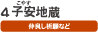 江戸時代、地蔵信仰は地域の信仰ととけあって、人々はいろいろなお願いをするようになりました。このため、お地蔵さんは長生きや子供の健康、豊作、病気治療などのお願いをそれぞれ分担して、奇跡を起こすようになってきました。延命地蔵、子安地蔵、イボとり地蔵などがそうです。大山にあらわれたありがたいお地蔵さんを信仰する地蔵信仰は、大山山麓にいきわたり、今も盛んに信仰されています。人々はあらゆるお願いを頼み、また亡くなった人の冥福を祈りました。